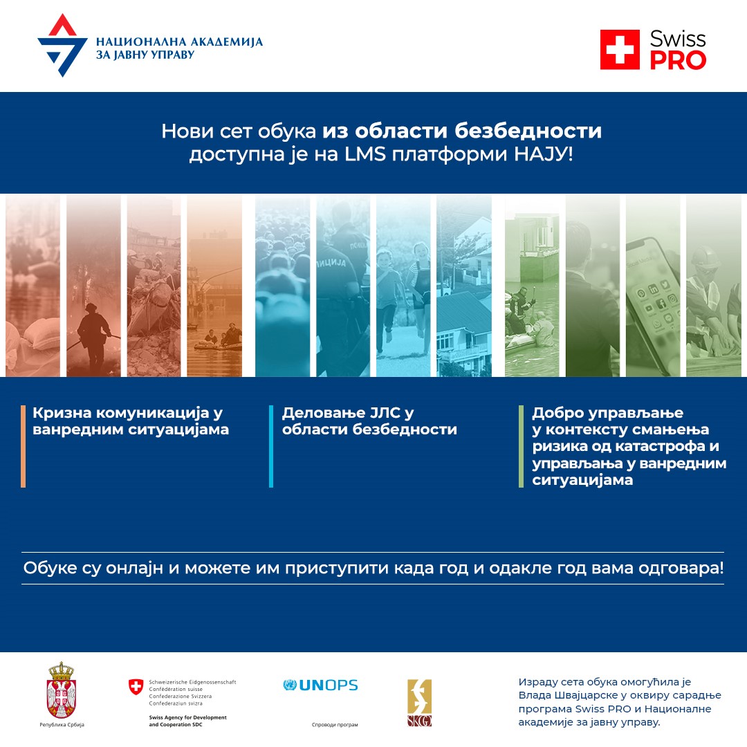 • ОНЛАЈН ОБУКЕ ЗА ЗАПОСЛЕНЕ У ЈАВНОЈ УПРАВИ О СМАЊЕЊУ РИЗИКА ОД КАТАСТРОФА, ЦИВИЛНОЈ ЗАШТИТИ И ОБНОВИ НАКОН НЕПОГОДА