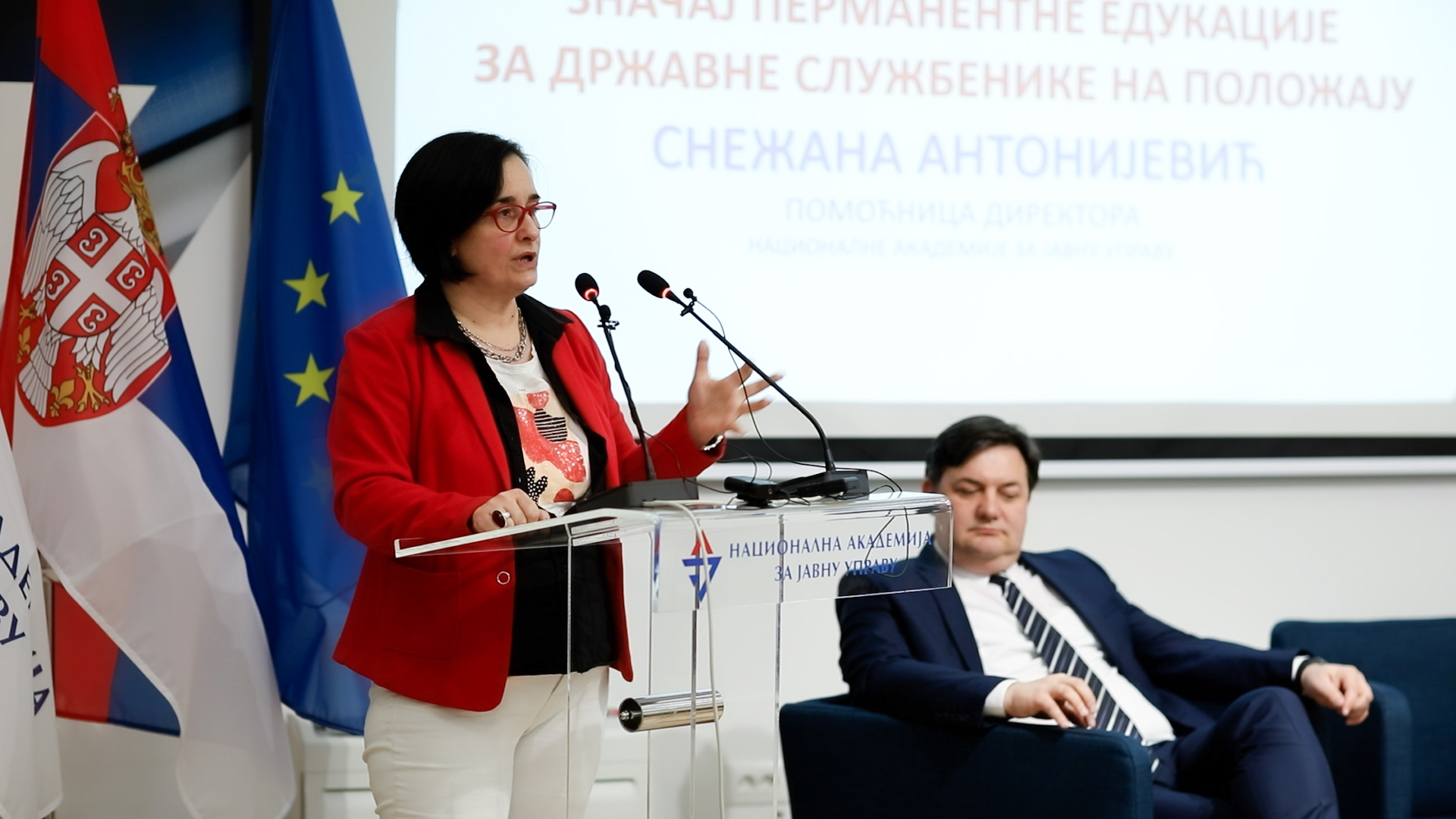 Помоћница директора НАЈУ госпођа Снежана Антонијевић поручила је полазницима да они као државни службеници на положају осим индивидуалне одговорности за лични развој имају и велику одговорност за развој својих запослених. Истакла је да је оријентација ка учењу и променама кључна компетенција која доприноси развоју осталих компетенција државних службеника.